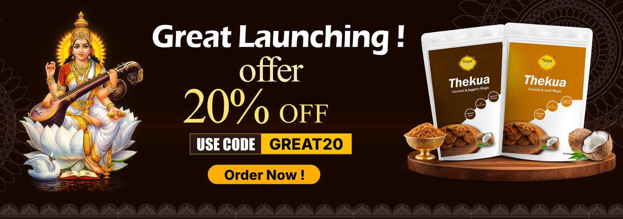 With NayaSwad, experience the true essence of traditional Thekua—a classic treat treasured across generations. Celebrated for its perfect crunch and delightful sweetness, Thekua is not just a snack but a reflection of cultural heritage. NayaSwad is committed to bringing you freshly made, preservative-free Thekua, delivered straight to your doorstep.